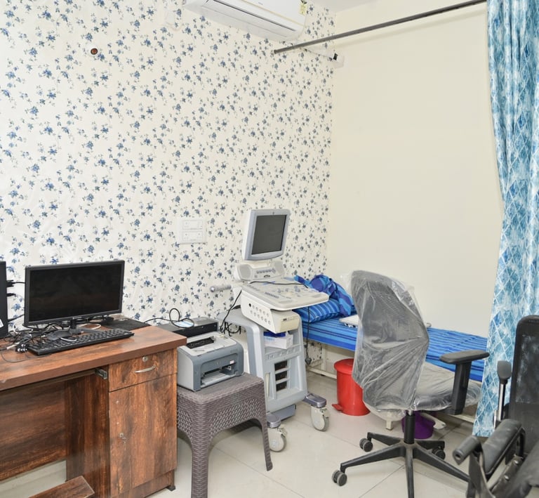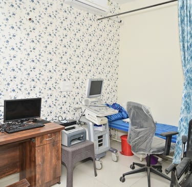 Ultrasound, pathology lab with home collection, X-ray, ECG, and 2D echo.